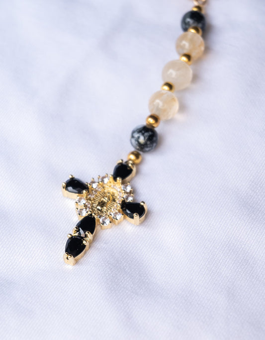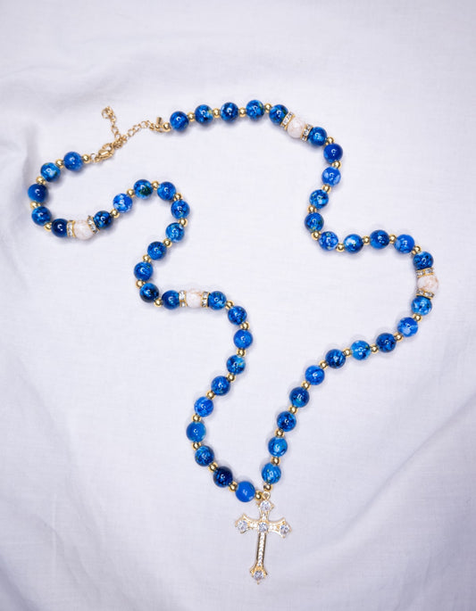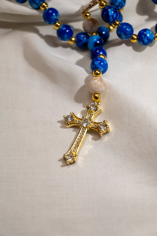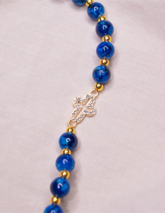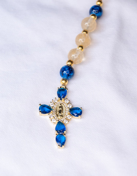 Chapelet - Jaune Citrine, bleu marin & Doré