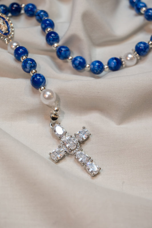 Merci c’est un chapelet pour le mariage de ma fille . Le bleu est magnifique. J’aime beaucoup cette composition.