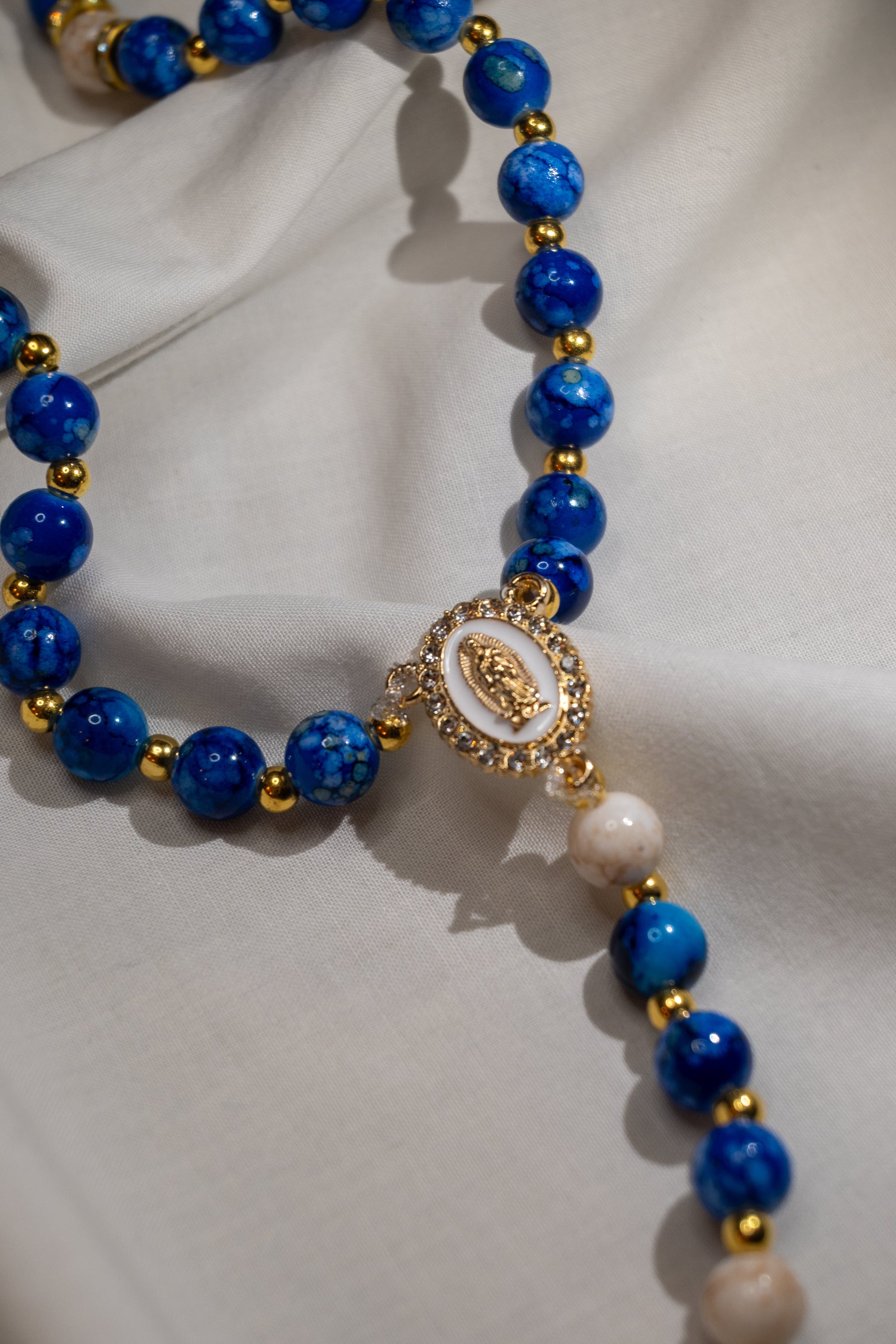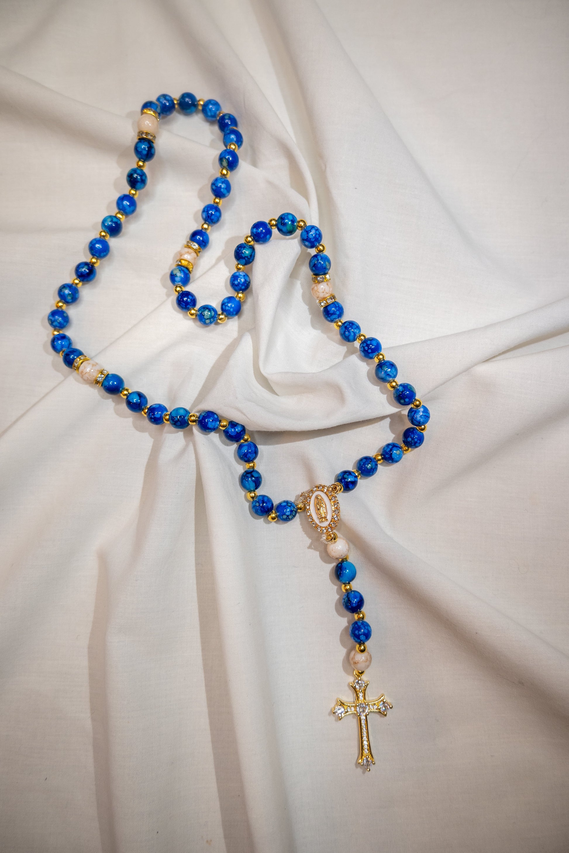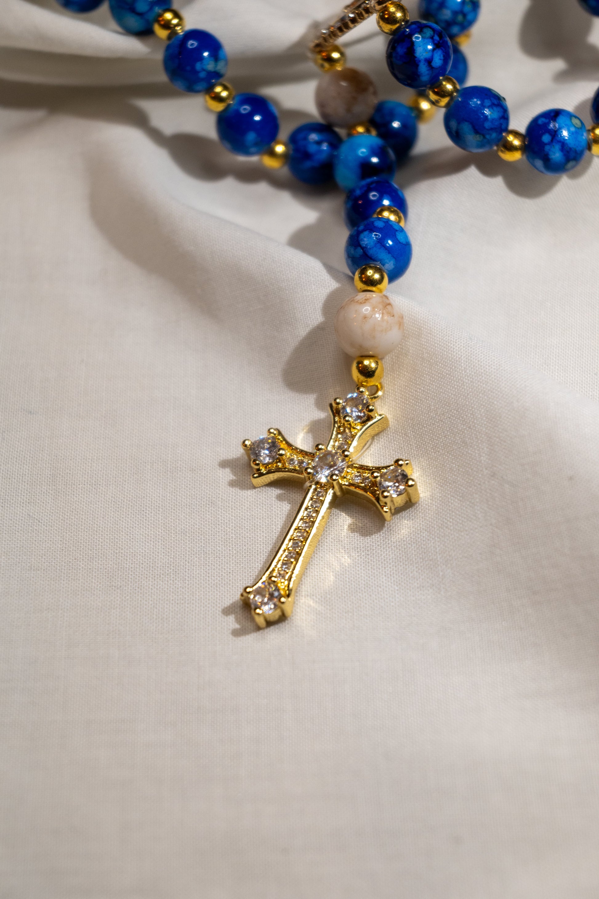 Chapelet chrétien Bleu Marin et Doré - Fait Main avec Soin