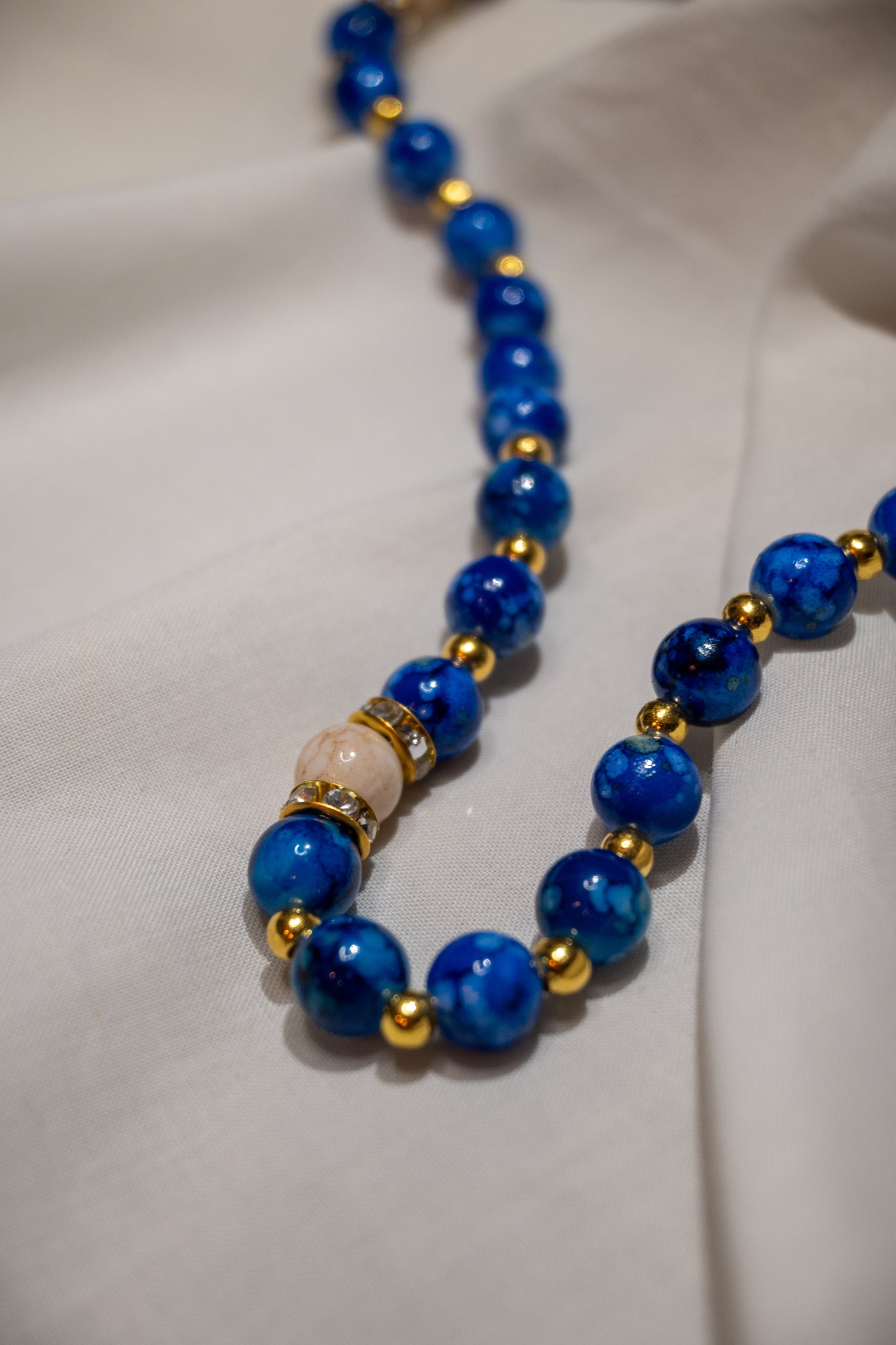💫 Matériaux Sélectionnés : Les perles sont soigneusement sélectionnées pour leur couleur bleu marin intense, enrichies de détails dorés qui illuminent l’ensemble. Chaque composant est choisi pour sa qualité et sa durabilité.